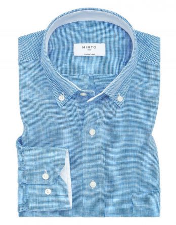 MIRTO CAMISAS DE LINO | HOMBRE Camisa casual microdibujo azul de lino