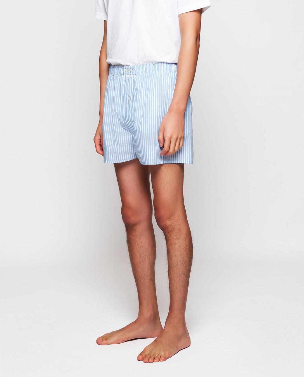 Bóxer fil coupé rayas azul y blanco 100% algodón. Interior de la cintura forrada de felpa para mayor comfort, costura americana en la parte trasera y cierre con botones.