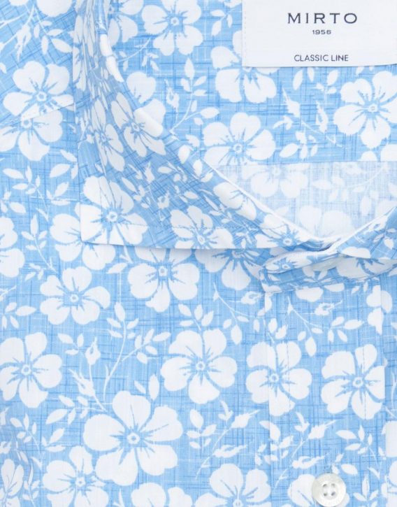 Camisa casual estampado floral 100% algodón, cuello italiano soft con varillas extraíbles, sin bolsillo, manga larga, puño con doble botón, classic fit.Interior de cuello y puños blanco. Una prenda que aúna estilo y diversión, sin perder la elegancia.