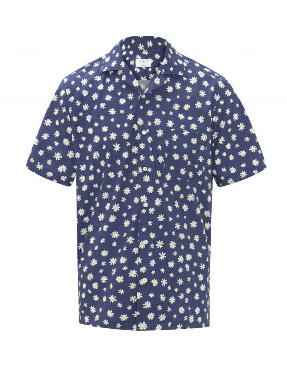 Camisa Hawaiana azul marino estampado margaritas 100% algodón, cuello camp, bolsillo en pecho, manga corta, classic fit. Bañador hidrófugo a conjunto para crear el total look definitivo del verano.