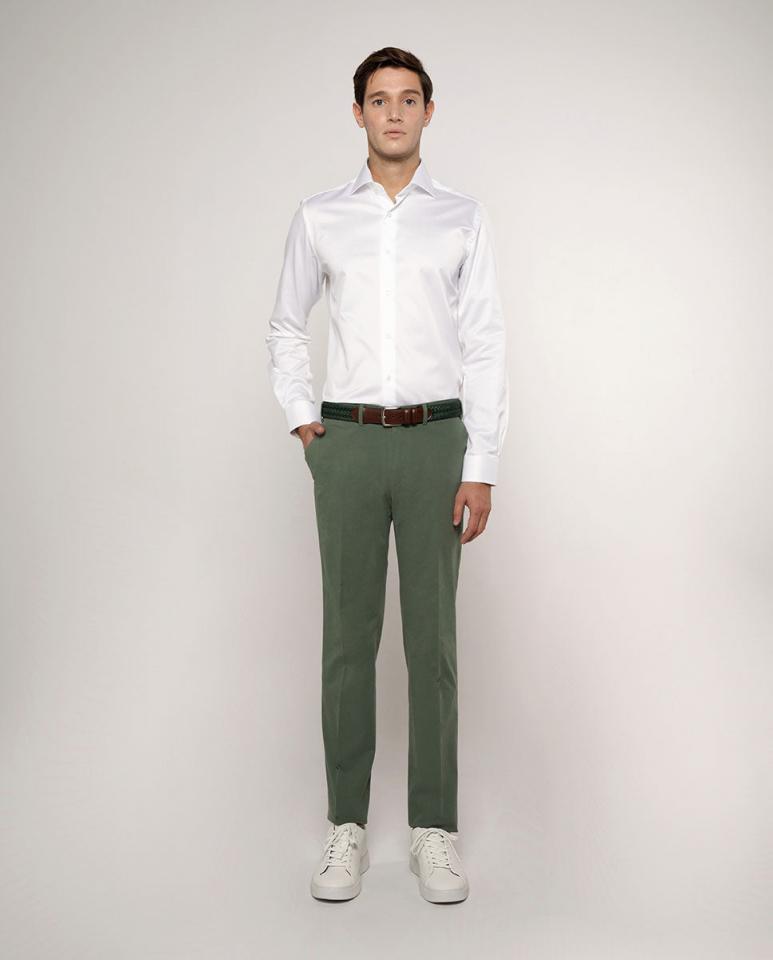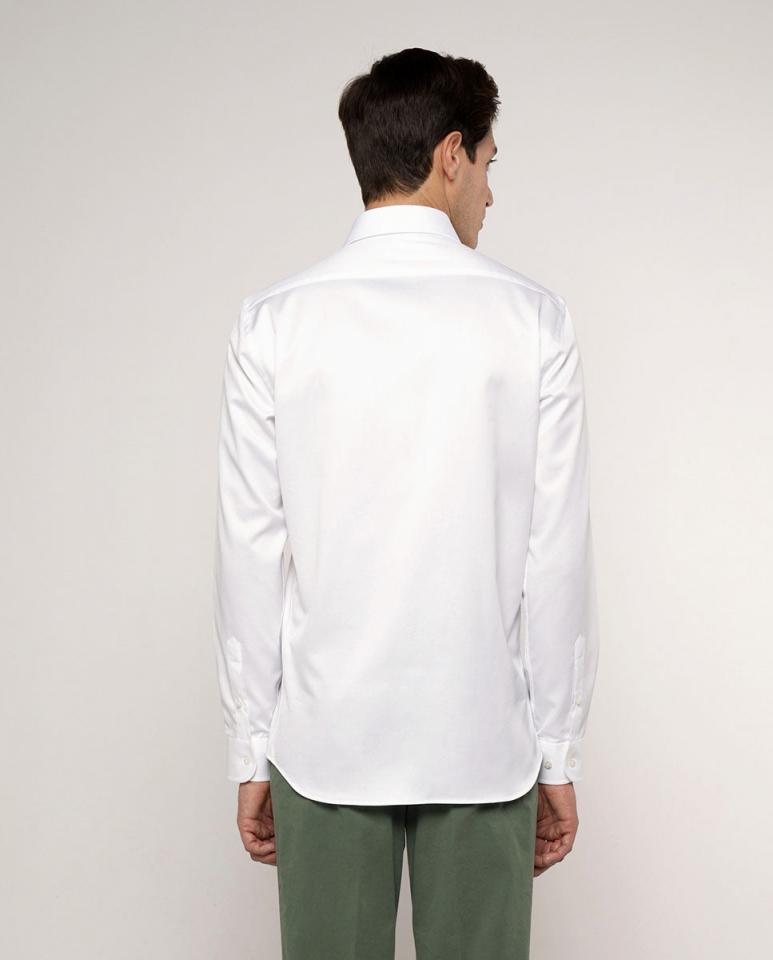 Camisa vestir con cuello italiano y puños con doble ojal (se puede usar también con gemelos) en tejido Panamá.