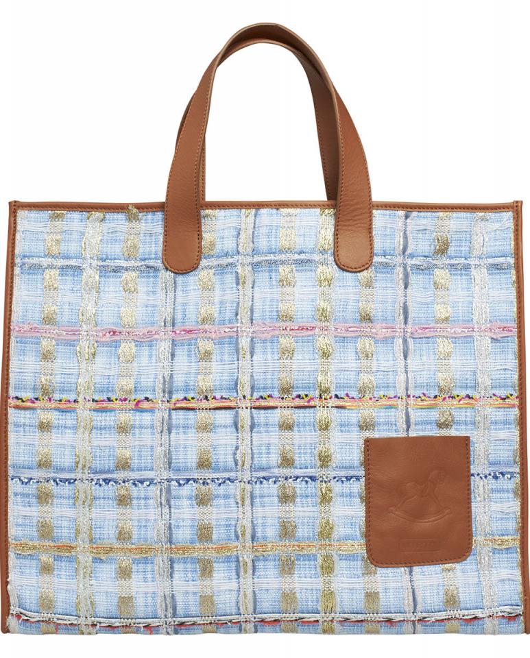 Bolso shopper confeccionado en tejido de tweed labrado y bolsillo interior de piel con cremallera. Detalle bolsillo exterior en piel con logo grabado y ribetes y asas en piel de vacuno 100%. Medidas en centímetros 40 x 30 x 15. Made in Spain.   Medidas: 40 cms x 30 cms x 15 cms Asas: 21 cms