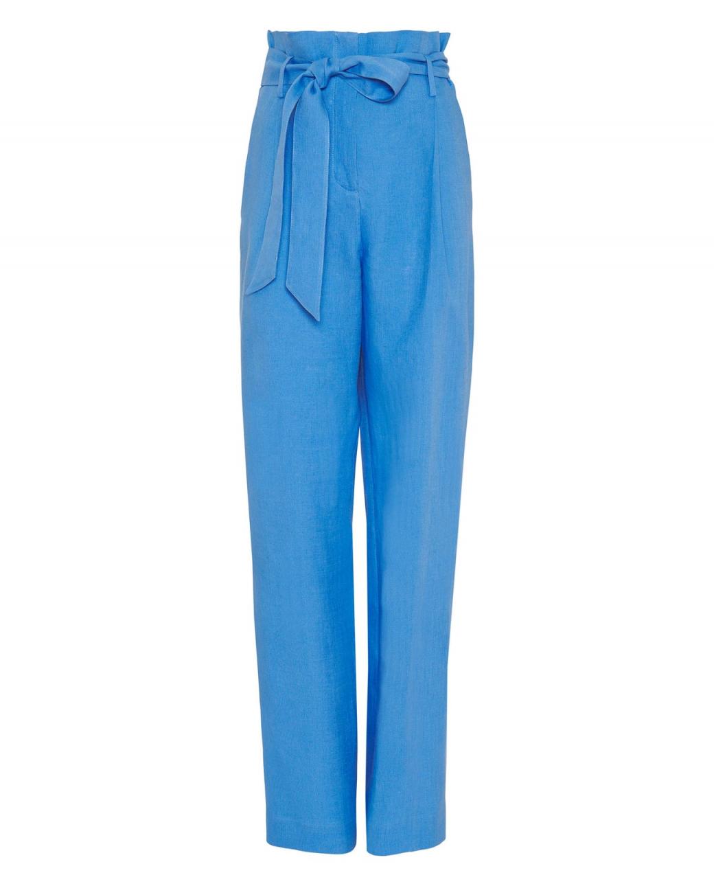 Pantalón largo 100% lino. Tiro alto con pliegues, cierre oculto y cinturón. Dos bolsillos laterales en delantero y dos de vivo en parte trasera.