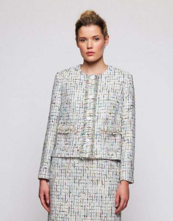 Sé el primero en valorar “MIRTO | MUJER Traje chaqueta y falda tweed multicolor de algodón”