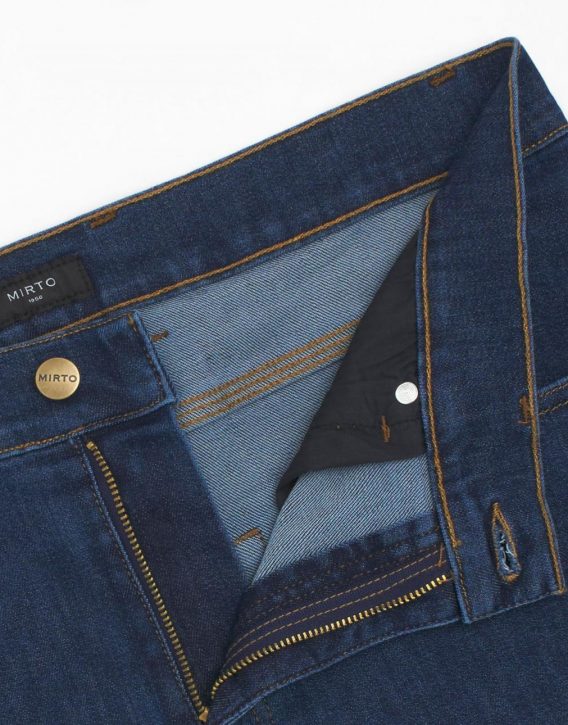 Pantalón vaquero de 5 bolsillos. El cierre es con cremallera y botón. El tejido es ligeramente elástico para darle a la prenda un grado máximo de ajuste y confort. Combina con cualquier camisa MIRTO y en cualquier ocasión.