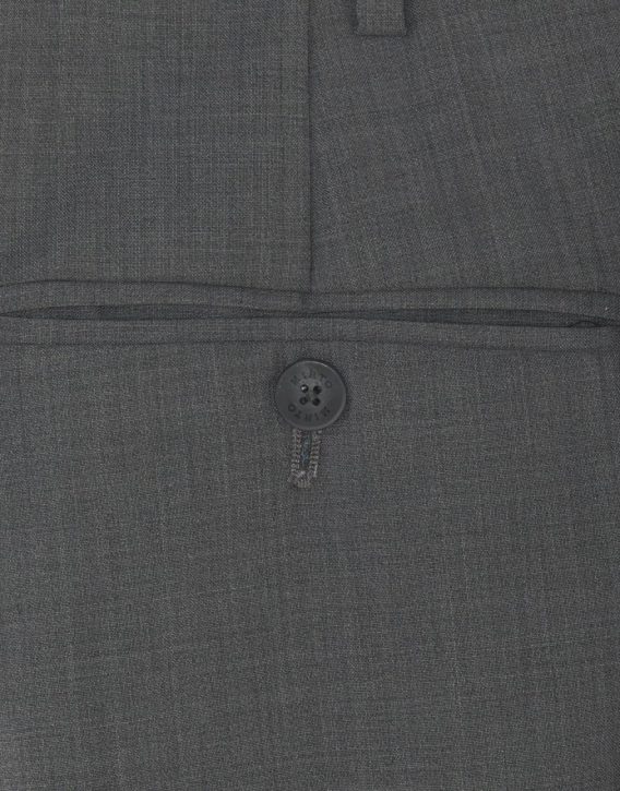 Pantalón recto de vestir, de lana fría, con pliegues y relojera. Los bolsillos delanteros son inclinados, y uno trasero horizontal con ojal y botón. Cierre asimétrico con cremallera y botón. Es un básico para looks urbanos y para compromisos sociales.